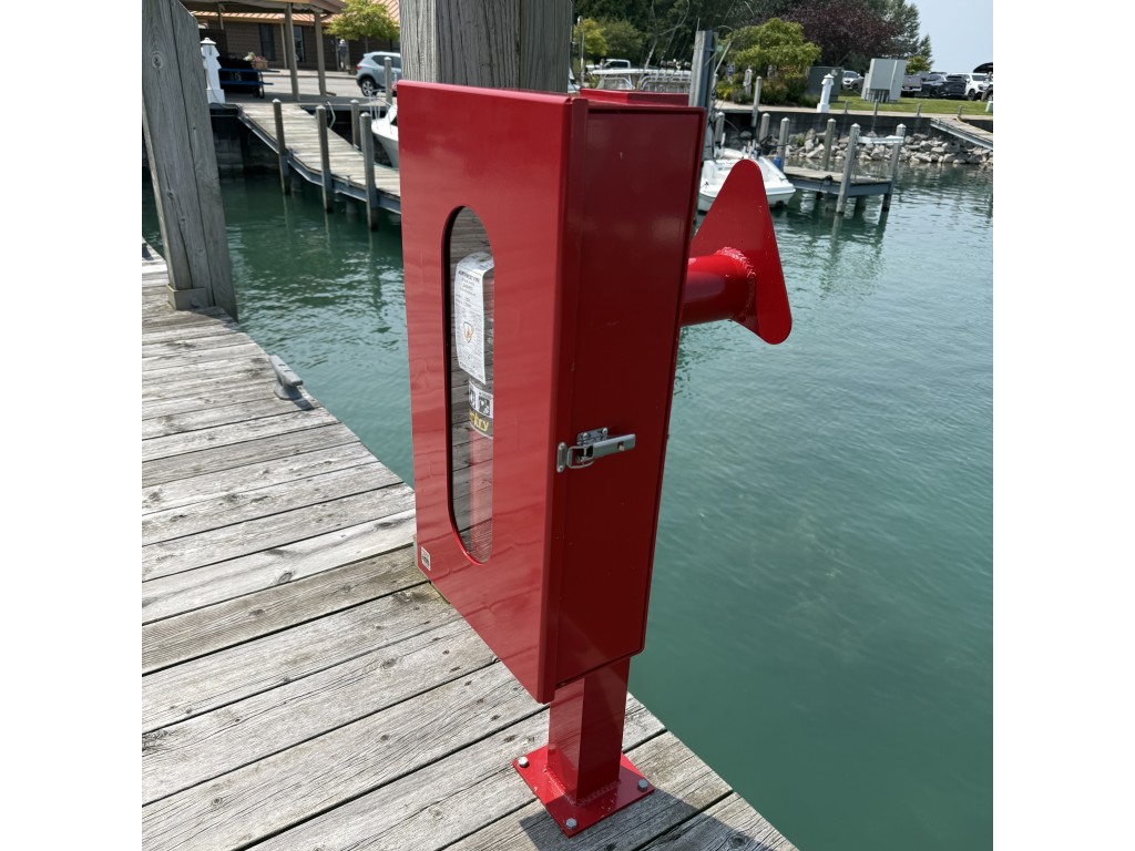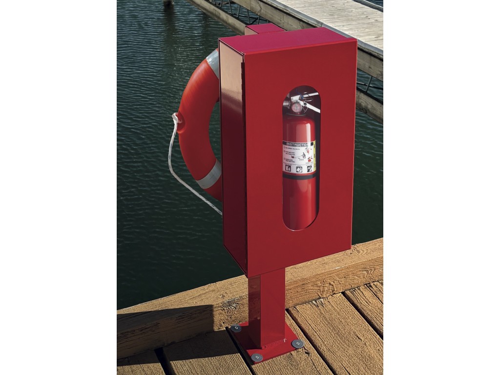 Keep your fire extinguisher clean and ready to use for years to come with this attractive cabinet built for the marine environment. This solid aluminum cabinet is perfect for public dock areas where fire extinguishers need to be readily available. Fits most 10-pound fire extinguishers.